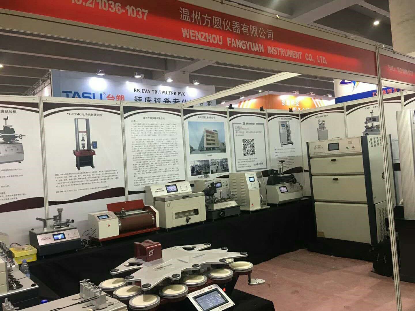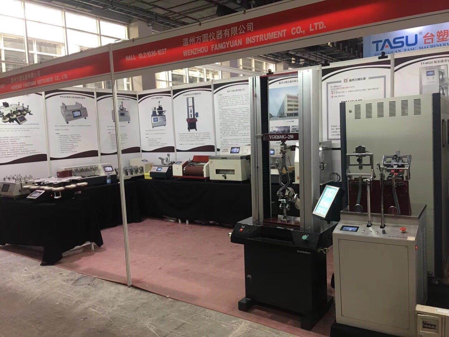 溫州方圓儀器有限公司應(yīng)展覽會(huì)主辦方邀請(qǐng),參加此次展會(huì),并實(shí)物展出了:FY600日曬氣候老化儀、YG028萬(wàn)能材料試驗(yàn)機(jī)、FXC651耐折試驗(yàn)機(jī)、YG401FII織物平磨儀、XGMCIIA皮革摩擦色牢度儀、FXC621耐磨試驗(yàn)機(jī)、FXC171剝離試驗(yàn)機(jī)、FXC623鞋用纖維曲撓儀、FXC627鞋帶與鞋帶耐磨試驗(yàn)機(jī)等16種鞋類(lèi)、皮革檢測(cè)儀器。